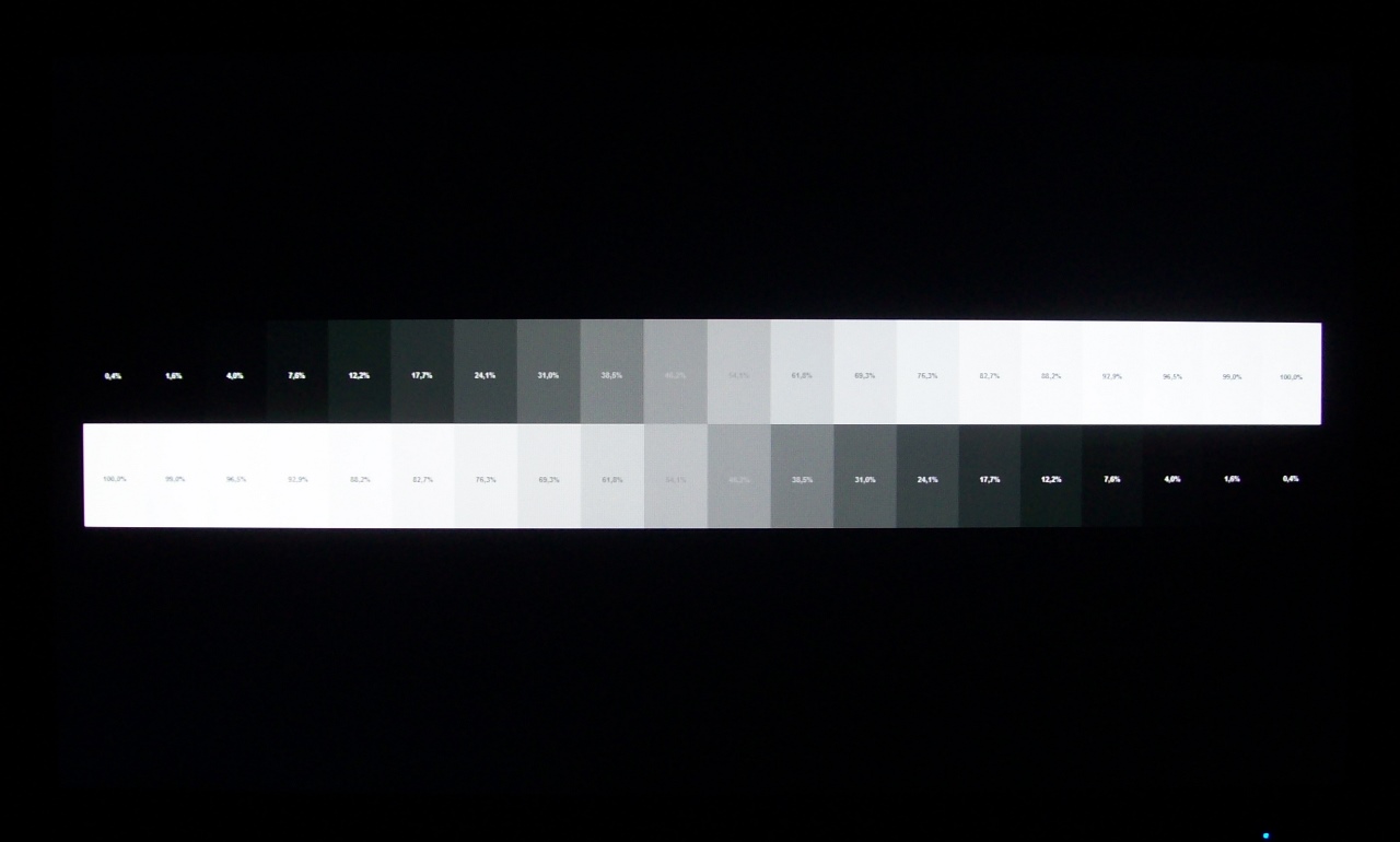 Suddividendo lo schermo in nove rettangoli, abbiamo misurato con il colorimetro l’uniformità della luminosità e dei colori. La differenza massima registrata è risultata pari al 9%, con una media del 4,1%, per quanto riguarda la luminosità, mentre per il colore, il Delta-E maggiore è stato di 1,9, con una media di 1,1.