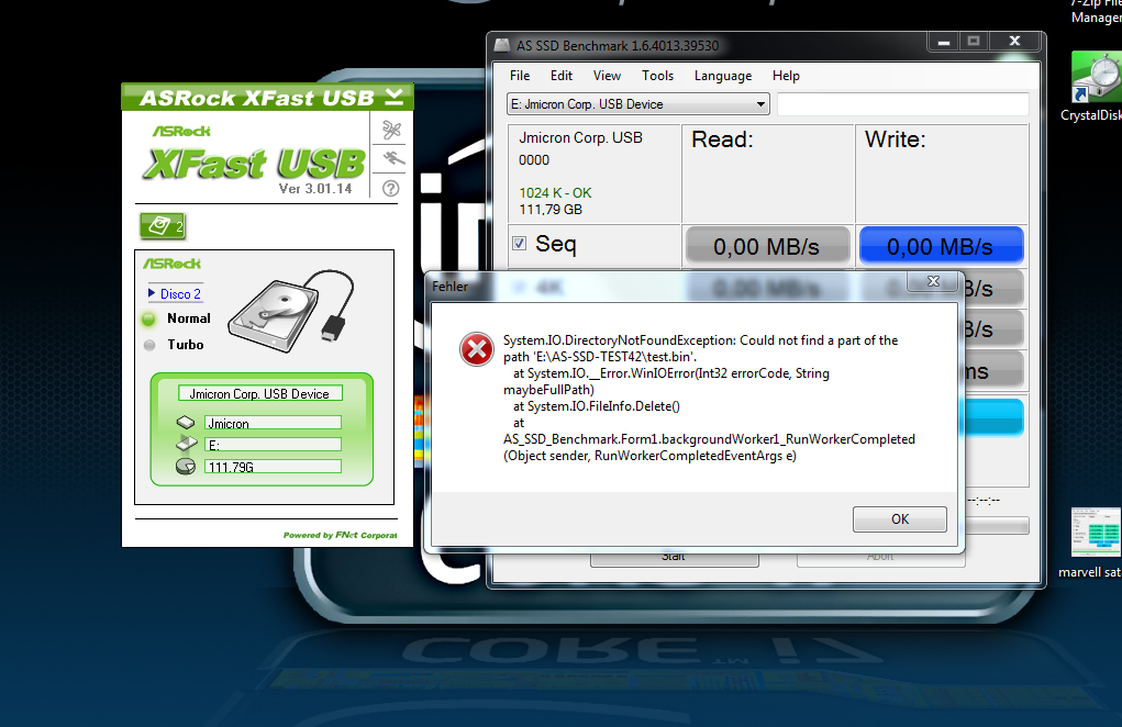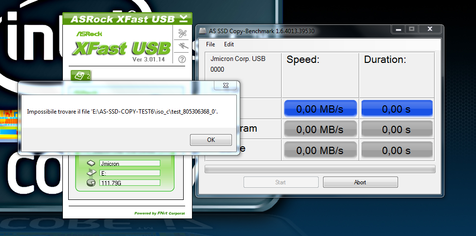 I test USB sono stati effettuati tramite Benchmark AS SSD e Crystal Disk Mark. Purtroppo a causa di una inaspettata incompatibilità nessuno dei test effettuati sulle porte USB 3.0 è arrivato a compimento ed effettivamente il disco è risultato non funzionante su quelle porte. La causa di questo malfunzionamento è per ora ignota, ma ci proponiamo di effettuare quanto prima altri test su USB 3.0 con altre periferiche dotate di questa interfaccia.