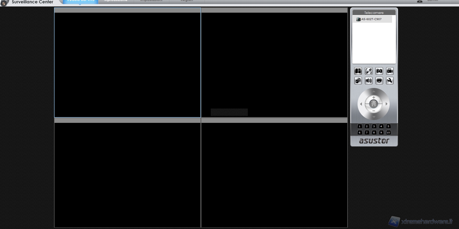 La schermata principale è divisa in quattro parti atte a visualizzare le immagini catturate da altrettante telecamere.